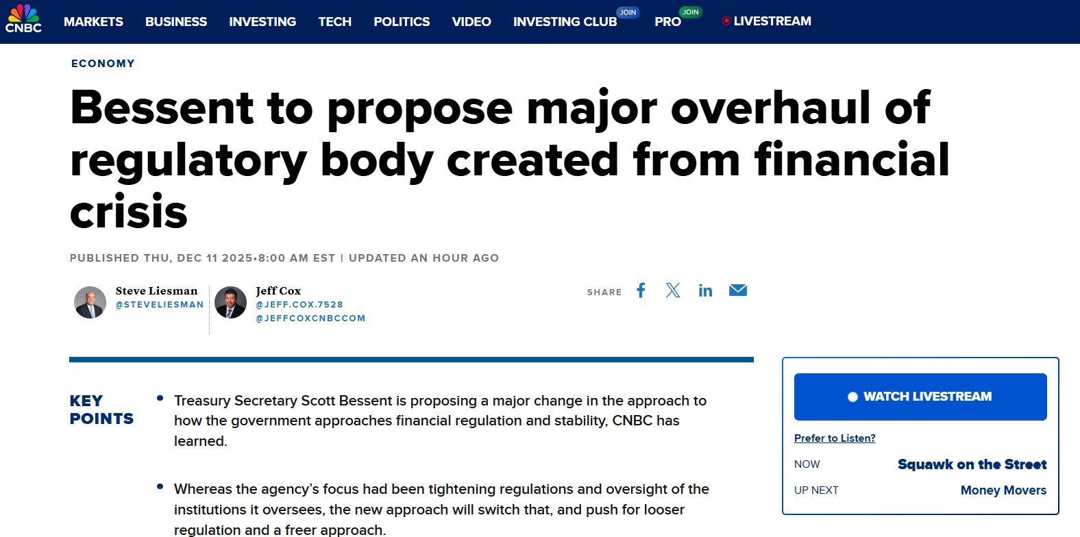 *DE-REGULATION occurs at the start of every financial bubble and a few years later, the newly created financial bubble leads to a crash. Deregulation was quietly announced on the morning of December 11, 2025: